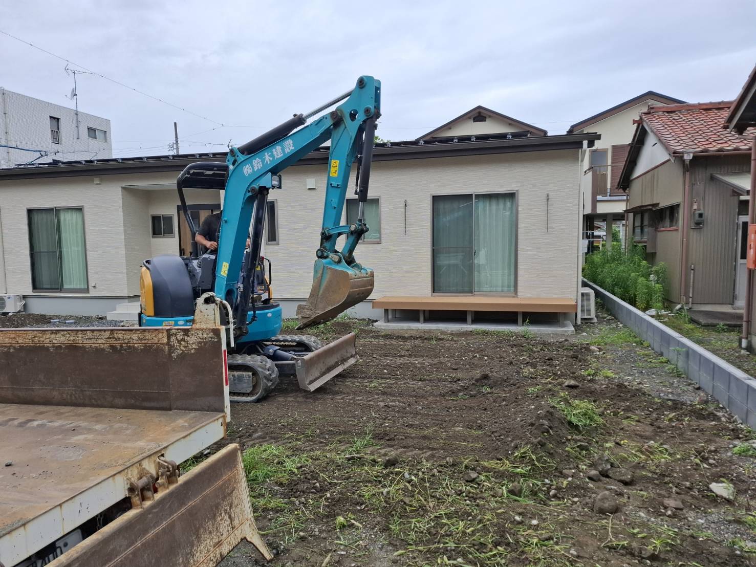 とても敷地が広いです!重機で高さを決めながら土を出していきます👷‍♂️